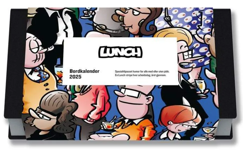 Spesialtilpasset humor for alle med eller uten jobb. En Lunch-stripe hver arbeidsdag, året gjennom, og helgetips fra Kjell & co. Lekkert design, med omslag som kan brettes rundt og brukes som stativ.