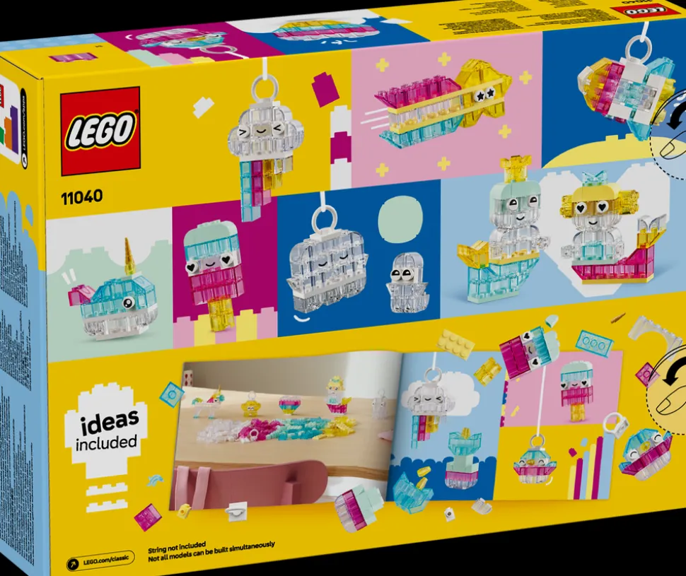 LEGO® Classic Magisk boks med gjennomsiktige klosser (11040) gir barn grenseløs, kreativ moro. Med 340 fargeglade klosser, hvorav mange er gjennomsiktige, samt diverse spesialelementer, stimulerer dette bygge- og utstillingssettet barns kreativitet med magiske modeller og fantasifull lek.