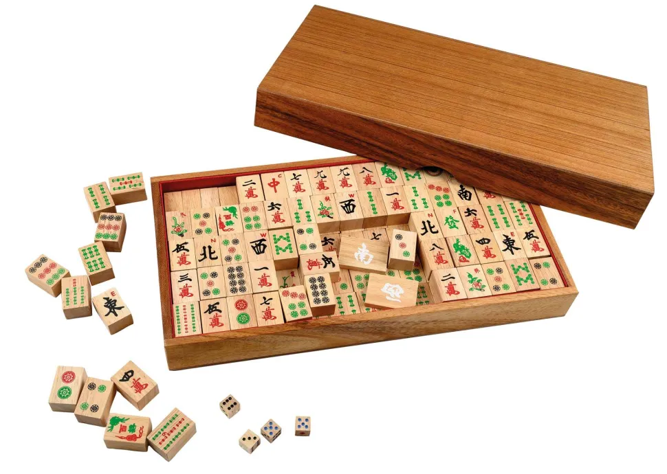 Mah Jongg is a very old Chinese parlour game for 4 people. From 144 tiles, so-called bricks, which bear different motifs, the players have to collect by placing and picking up the bricks of one colour or a series of equal values. The well thought-out, complex rules, which are nevertheless easy to learn, and the diverse game rituals make this game particularly attractive.