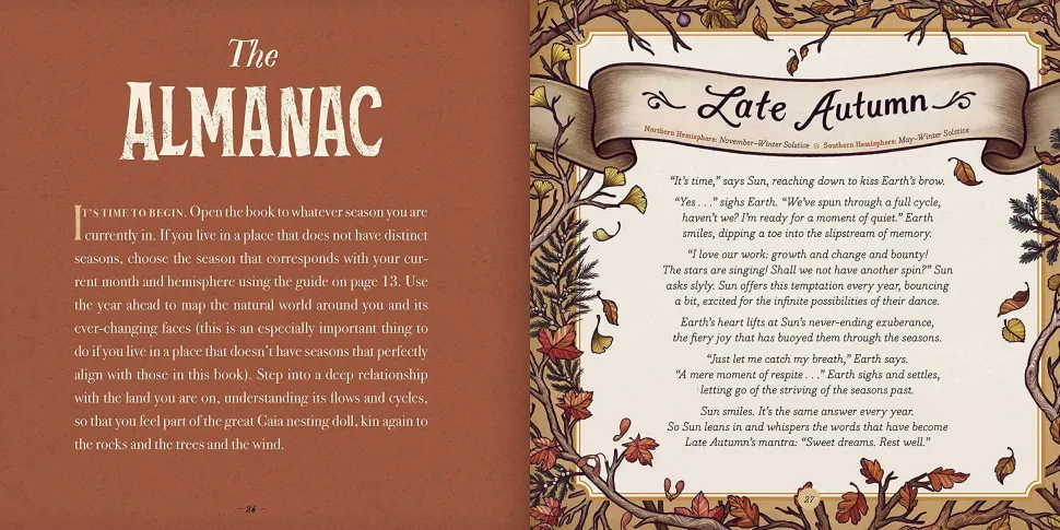 Organized into 12 chapters—Winter Solstice, Spring Equinox, Summer Solstice, Autumnal Equinox, plus early and late stages of each of the four seasons — the book features seasonal practices; exercises for the body and for writing and reflection; plant, animal, and mineral medicine; and symbolic explorations of the gifts and challenges that arise with seasonal change. Original illustrations by Kate O’Hara illuminate the symbolic richness of the text, and 28 pop-out oracle cards plus four bound-in pocket pages enhance the invitation for readers to use this interactive guide as an ongoing tool for cultivating the sacred in their own lives.