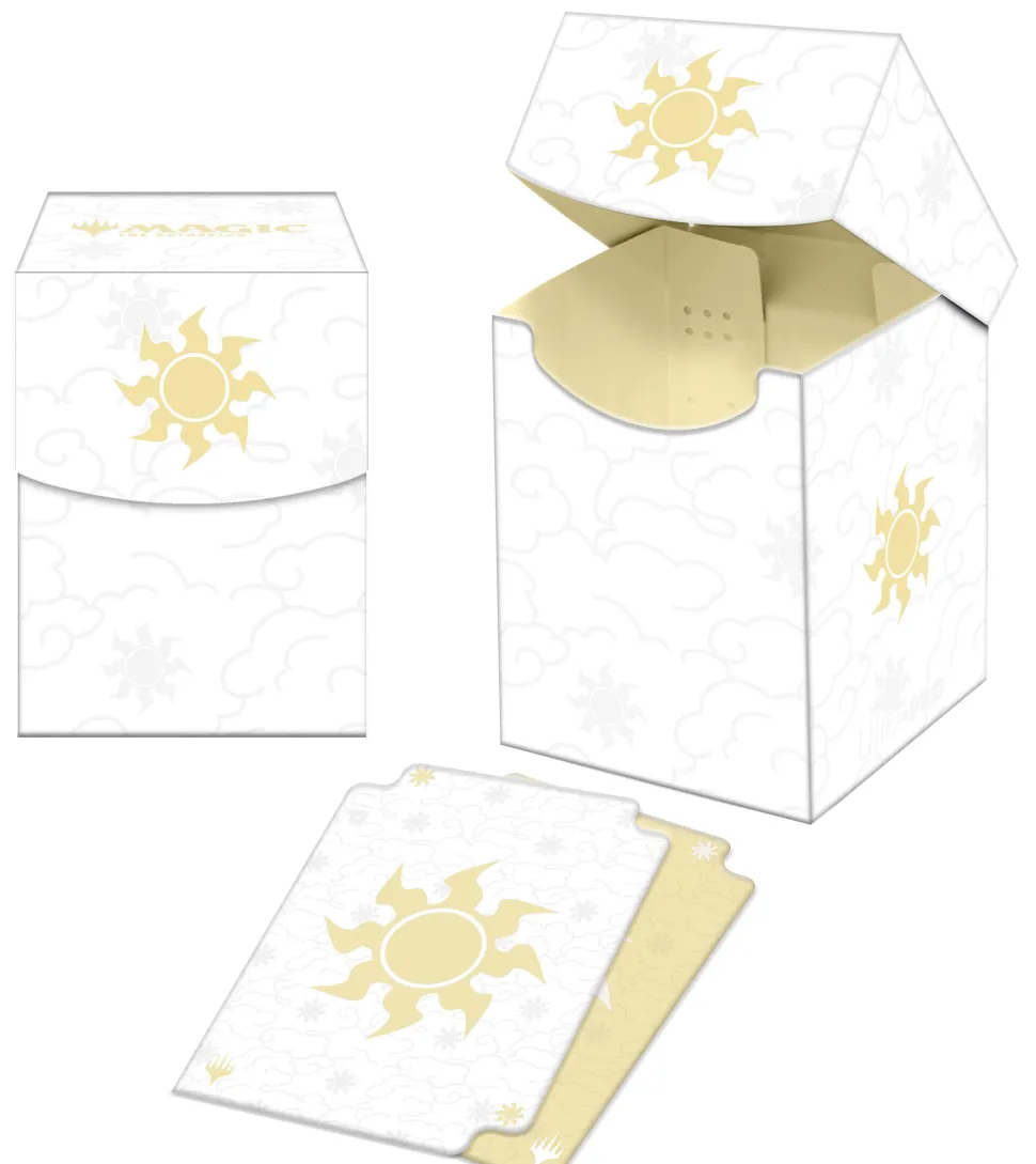 100+ Deck Boxes for Magic: The Gathering feature a vibrant, full-color artwork and includes a deck divider. Made with archival-safe, non-PVC, rigid polypropylene materials, you can store up to 100 double-sleeved cards with confidence. The self-locking lid keeps your cards securely stored when not in use, while also offering easy access. Sized for standard size trading cards.