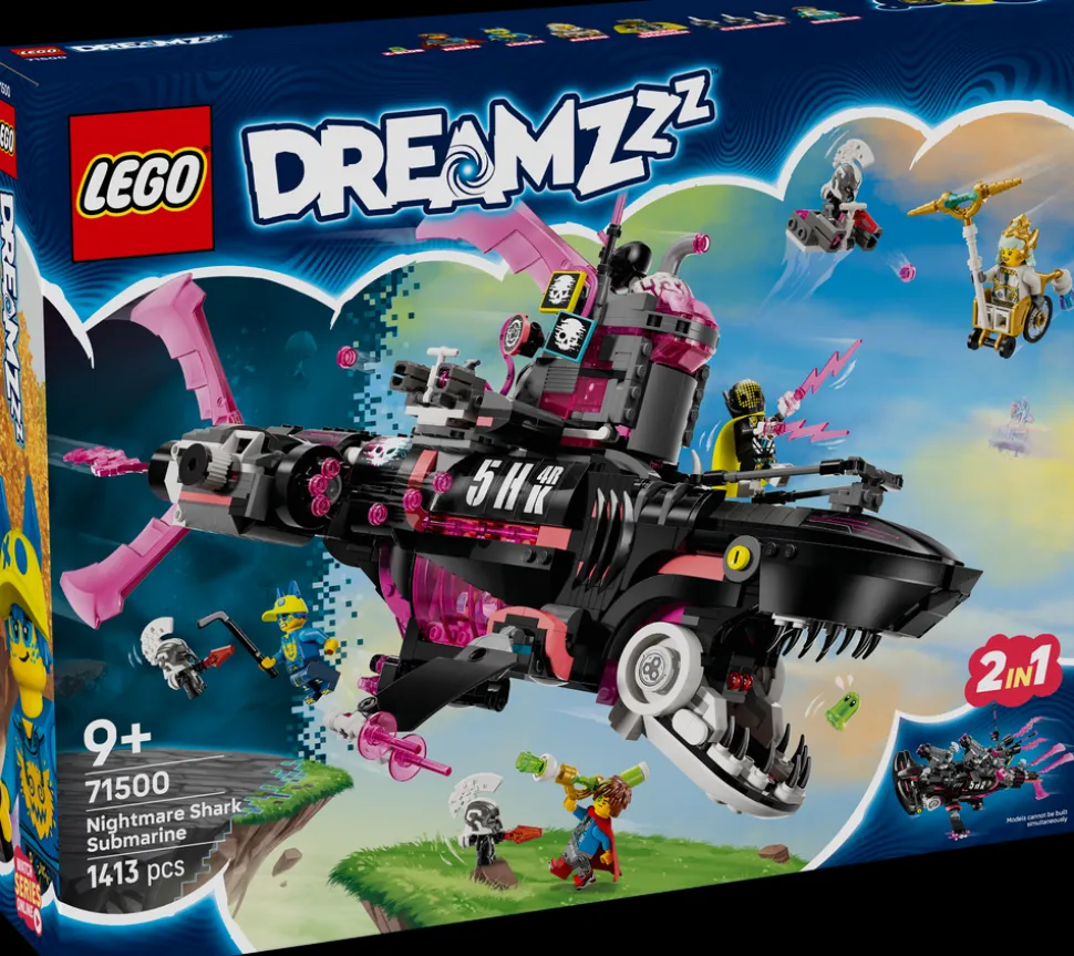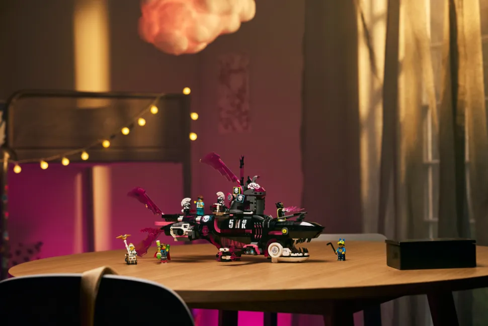 - Fartøyleke – slipp fantasien løs med byggesettet LEGO® DREAMZzz™ Marerittets hai-ubåt som gir barn fra ni år to byggealternativer