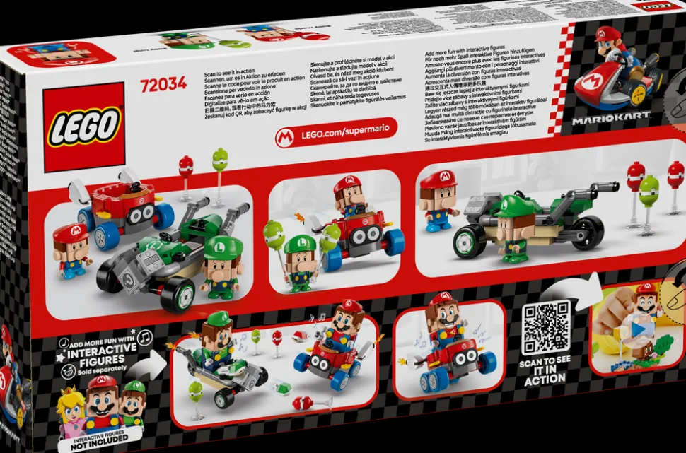 - Nintendo®-samlersett – utforsk settene i LEGO® Super Mario™: Mario Kart™ serien (settene selges separat) for å finne andre kjøretøy og figurer å konkurrere mot og finne på historier med