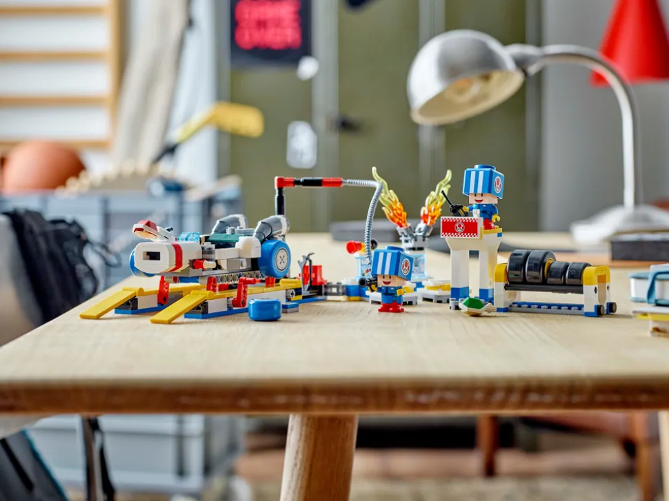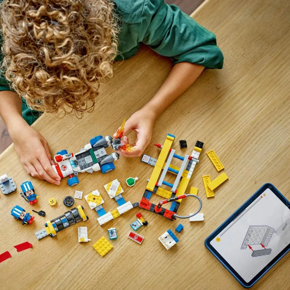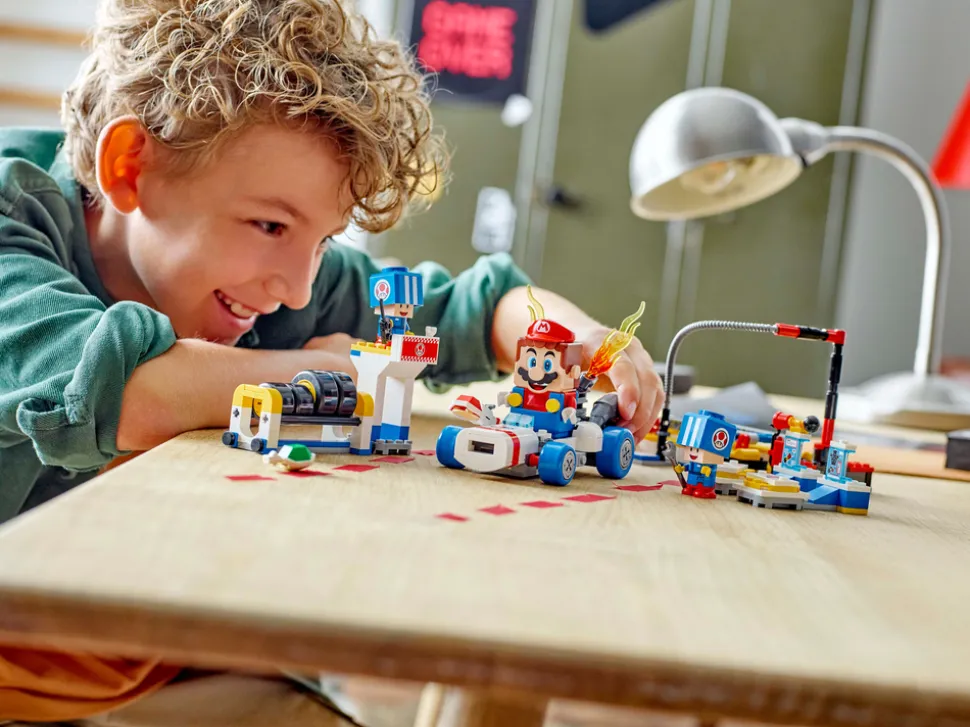 - Gaveidé med Nintendo®-figurer – med dette LEGO® Super Mario™: Mario Kart™ lekesettet som kan tilpasses, kan barn rolleleke at de er en del av depotteamet som klargjør en B Dasher for actionfylt racing på Toads verksted