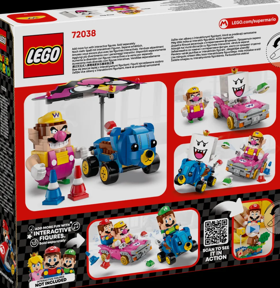 - Interaktiv lek – plasser LEGO® Mario™, LEGO® Luigi™ eller LEGO® Peach™ (figurer følger ikke med) i Badwagon eller Teddy Buggy for å utløse lyder og visuelle effekter fra Mario Kart™, inkludert tuting, drifting og mer