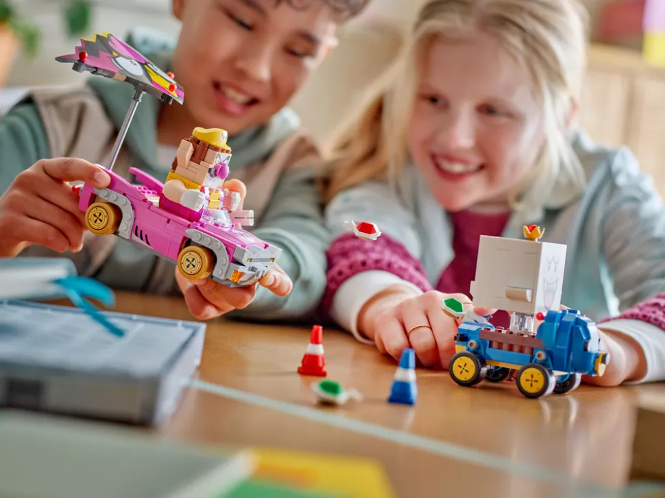 - Billøp med klossebygde Mario Kart™-lekekjøretøy – slå deg sammen med Wario i Badwagon og King Boo i Teddy Buggy, og bli med på skjellskyter-kamper, drifting, sveveflyging og manøvrering rundt trafikkjegler