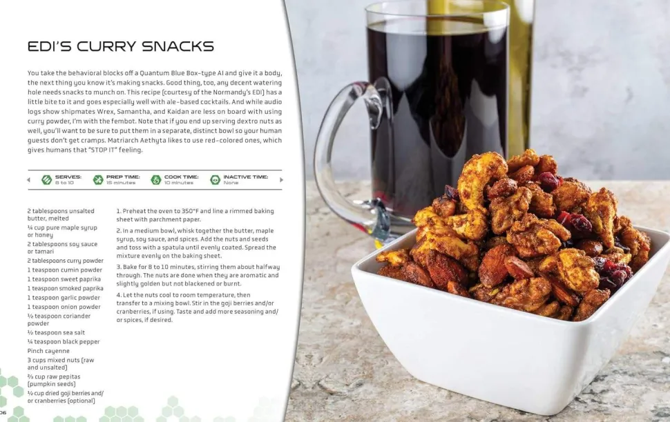 Toast to the crew of the Normandy and serve up canon-official cocktails from the Afterlife Club, the Dark Star Lounge, Chora’s Den, and beyond — right at your table. A cosmic compendium of recipes that combine accessible mixology with stunning images, this book will take you to the epic edges of the Mass Effect universe.With drinks honoring Shepard, Garrus, Wrex, Tali, and more, The Official Mass Effect Cocktail Book includes step-by-step instructions, tips on how to take any beverage to the next level, and beautiful full-color photography. As lively and explorative as the Mass Effect universe, this book is an essential addition to every fan’s collection.70+ RECIPES: From refreshing cocktails for the crew to sophisticated after-dinner sips, learn to make specialty drinks for any occasion from across the entire Mass Effect series.