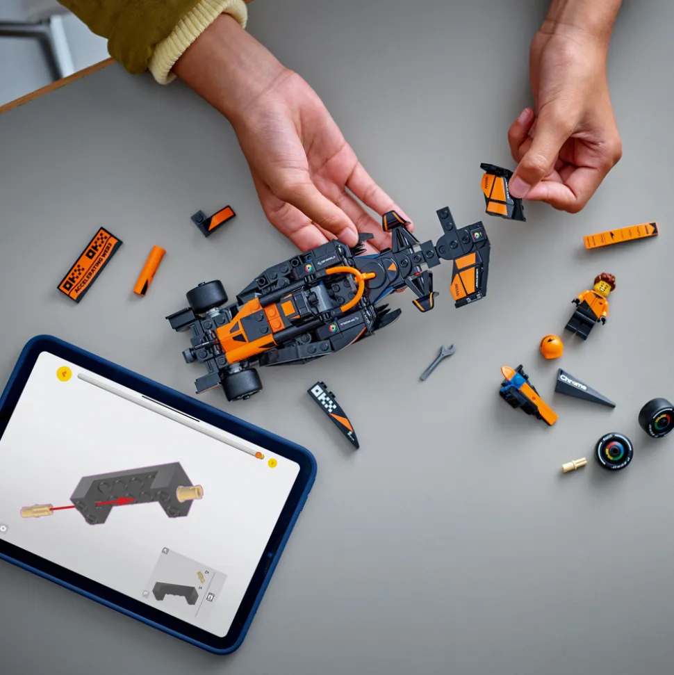 - En minifigur – kjøretøysettet inkluderer en sjåførminifigur med McLaren-drakt og hjelm med vinge, som barn kan plassere i førersetet for å iscenesette actionfylt billøp-rollelek
