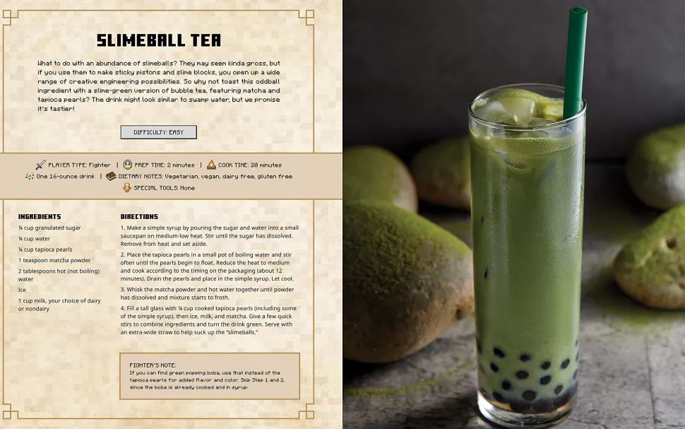 Discover 40+ recipes like Mooshroom Burgers, Suspicious Stew, and The Cake! Featuring recipes that are ideal for every skill level (and player type), this cookbook is just what you need to bring a touch of Minecraft into your kitchen. So, what are you waiting for? It’s time to gather, cook, and eat!