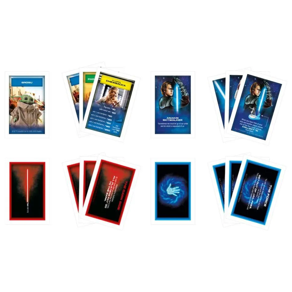 Let the Force be your ally! In this Monopoly: Star Wars Light Side Edition board game, players form as many Rebel alliances as they can to protect the galaxy from evil! The more alliances formed, the more credits a player can collect from other players. Use Yoda and The Force cards for guidance, but beware the power of the dark side! Land on a Ship space? Jump to hyperspace and move to any Rebel hero between that Ship and the next one on the board. The last player with credits when all other players have lost theirs wins-and restores peace and justice to the galaxy! Add intergalactic fun to Family Game Night with the Monopoly: Star Wars Light Side Edition. This family board game also makes a great gift for Star Wars fans, Star Wars toy collectors, Monopoly game fans, and kids ages 8 and up.Includes gameboard, 6 character tokens, 6 character cards, 1 plastic Yoda with base, 16 Rebel Hero cards, 13 The Dark Side cards, 13 The Force cards, 44 plastic Jedi Starfighters, 1 die, 98 cardboard credits, and game guide.