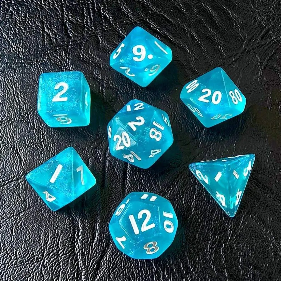 Et sett med syv forskjellige terninger, som passer til rollespill. Inkluderer: D4, D6, D8, D10, D12, D20 og en prosentterning.