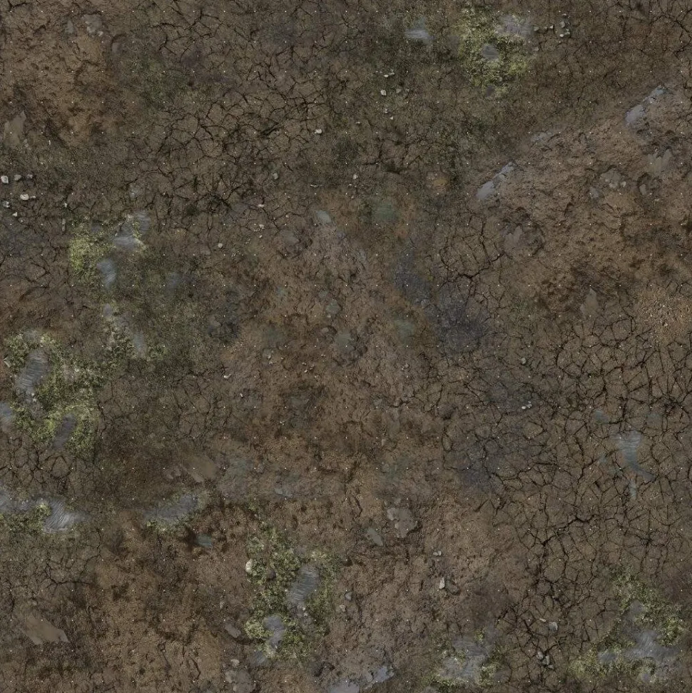 This gaming mat depicts a mud-covered field, also usable as the base for a townscape. It is printed in high quality on fabric with a 1mm neoprene backing. It can be combined with similar mats to make a larger battlefield and can be rolled or folded for easy storage.