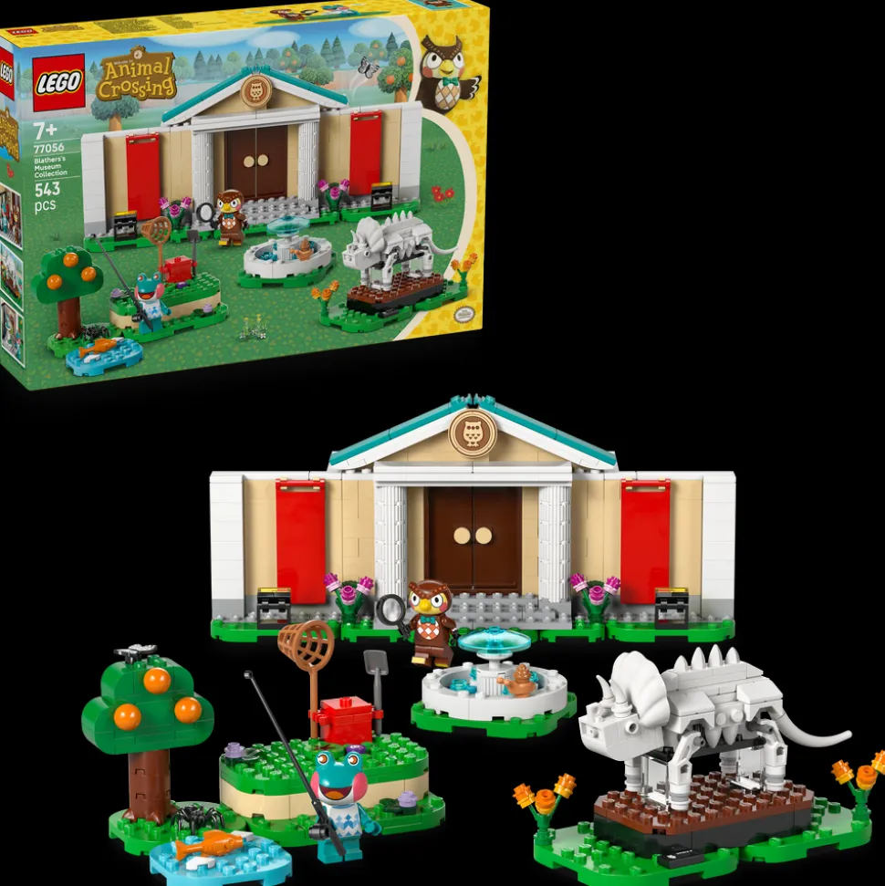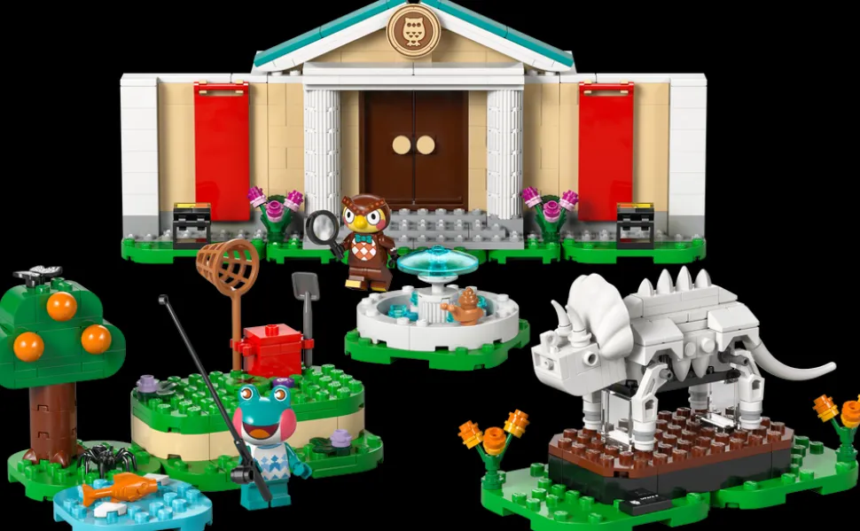 Med denne LEGO® byggeleken kan barn gjenskape museet fra Animal Crossing-dataspillserien og tilpasse de ulike utstillingsområdene med funnene sine. De kan bruke spaden for å grave opp det manglende triceratops-halebenet, fange fisk til akvariet og fange sommerfugler og insekter med et nett. Settet har justerbare, hengslede vegger og elementer som kan flyttes rundt, for å gi barn ekstra lekemuligheter. Settet inkluderer også en fontene og Roost kafé, hvor barn kan slappe av med minifigurene av Blathers og Lily, før de legger ut på neste oppdagelsesferd i naturen. Unge byggere kan i tillegg glede seg over en digital byggeopplevelse med LEGO Builder appen, hvor de kan zoome og rotere modeller i 3D. Settet inneholder 543 deler.