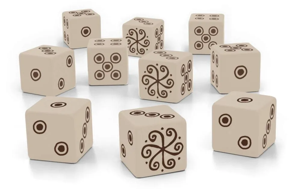 A set of ten engraved six-sided dice, designed specifically for the Vaesen roleplaying game. These 16 mm special dice are designed to support the game mechanics but can be used as normal six-sided dice as well.