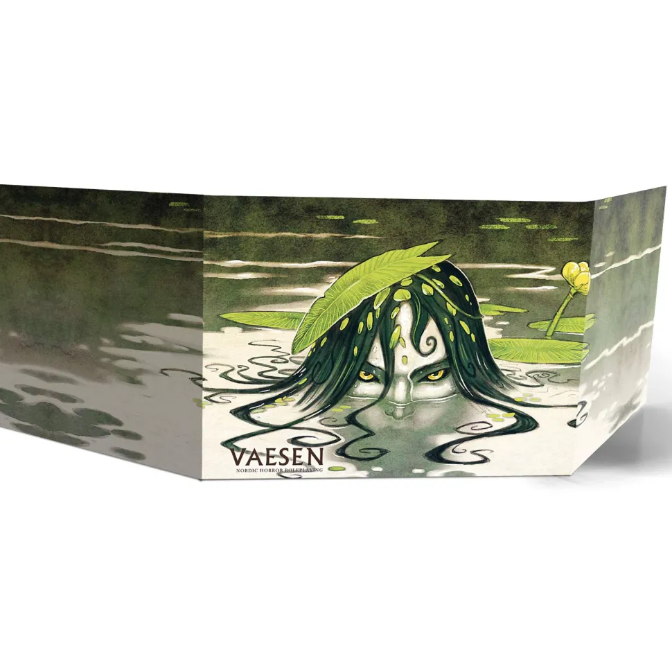 A deluxe Gamemaster’s screen in landscape format for Vaesen – Nordic Horror Roleplaying. It features Johan Egerkrans’s art on the outside and a host of useful tables and important information on the inside, while keeping the GM’s plans hidden from the eyes of inquisitive players.