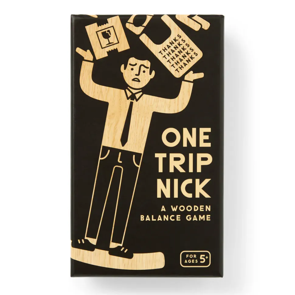 GIFT IT UP – The One Trip Nick Balance Game by Brass Monkey is going to be the biggest hit at your next party. It’s easy to play and perfect for all ages, making it a great gift for anyone. The wooden pieces are designed with a vintage style, making game play more interesting and are sure to inspire some old school competition! Brass Monkey – We’re here to turn the things that people didn’t know they wanted into the things that they can’t live without. At Brass Monkey, we make well designed product that just happen to have a great sense of humor. If you want to have a few drinks and laugh about stupid stuff– well our gifts and games are right up your alley.
