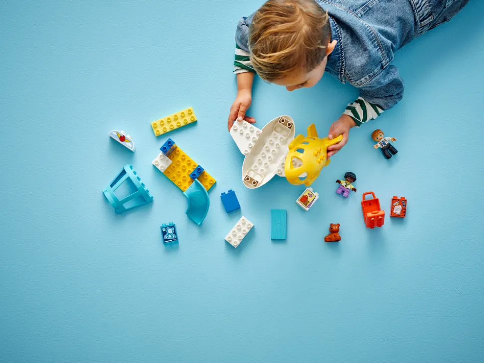 - Late som-sett for førskolebarn – fantasivekkende leke med barn- og pilotfigur og en LEGO® DUPLO® kosebamse, som gir barn flere rollelek-muligheter