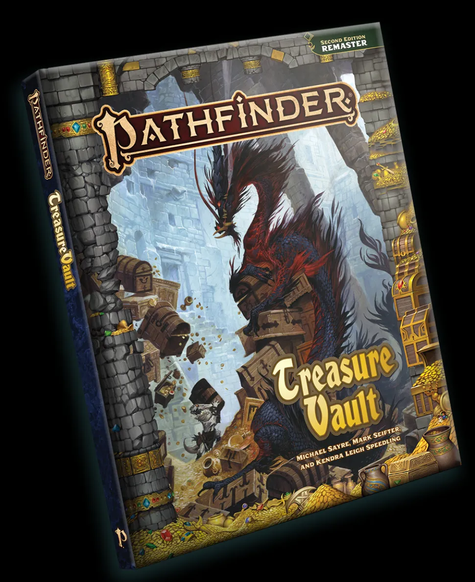 Pathfinder Treasure Vault (Remastered)reveals the glittering hoard of a terrifying dragon, as presented by the creature’s plucky kobold assistant. This224-page hardcover rulebook presents a catalog of gear from nearly every category of equipment and magic item available in the Pathfinder RPG, updated to work perfectly with the remastered Pathfinder Second Edition rules! Give your character the perfect tool for the job with signature weapons, customizable relics, and wondrous items to fit your every need while preparing for any eventuality with potions, elixirs, wands, and more!