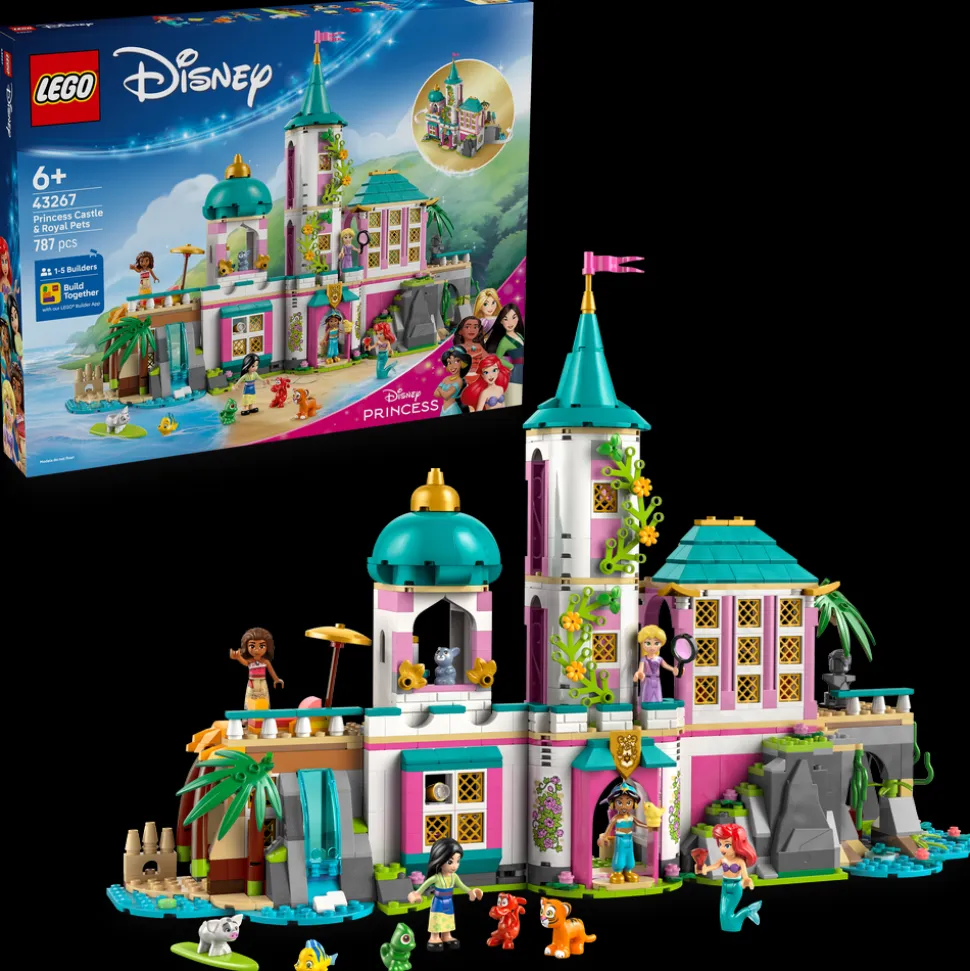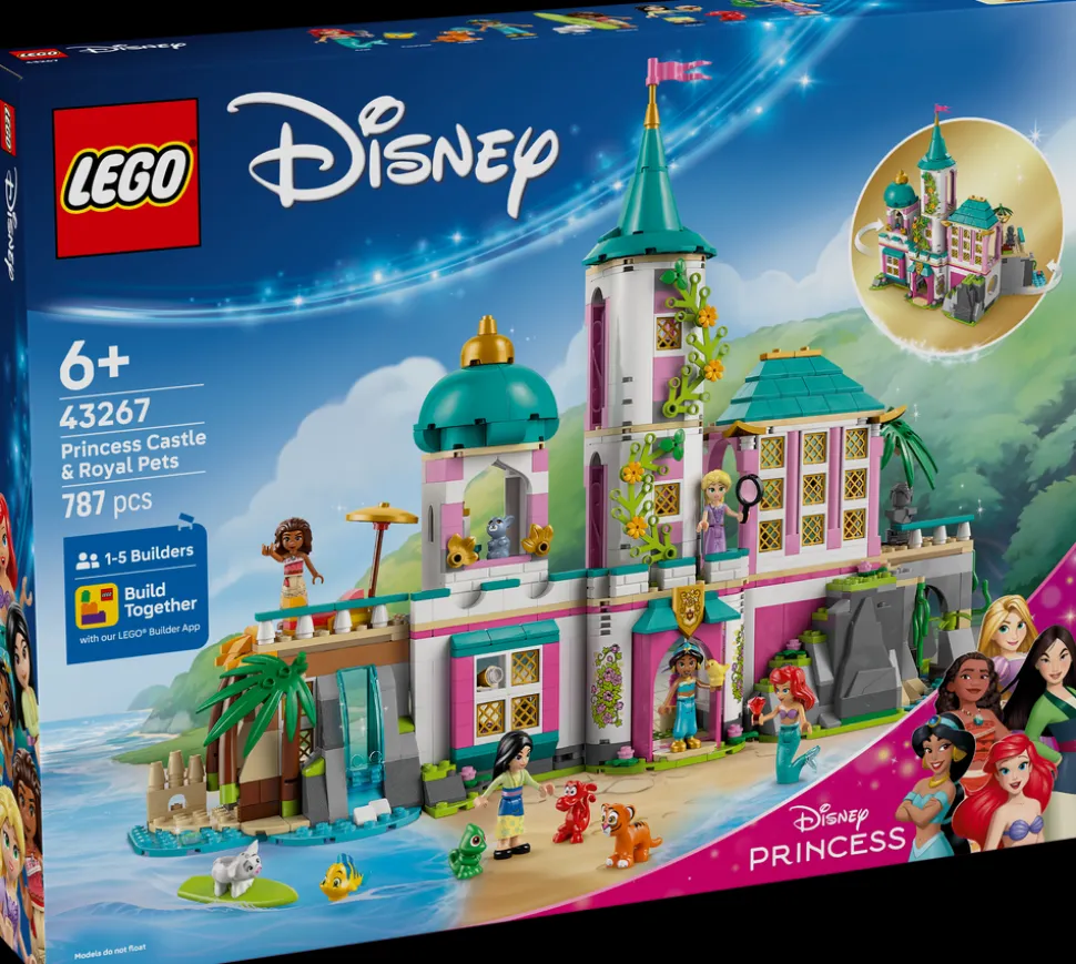 Med byggelekesettet LEGO® ǀ Disney Prinsesseslott med kjæledyr (43267) får barn og Disney-fans en magisk verden å utforske. Denne gaveideen for jenter og gutter fra seks år inneholder et slott, hvor hver prinsesse har hvert sitt rom, og modellen kan lukkes og stilles ut. Settet inkluderer mye tilbehør og mange funksjoner, blant annet en bue, en fossefalltunnel og møbler som kan tas ut. Byggeleken inneholder også LEGO ǀ Disney minidukkefigurer av Ariel, Rapunsel, Mulan, Jasmin og Vaiana samt LEGO ǀ Disney dyrefigurer av Fomle, Pascal, Rajah, Pua og den første figuren noensinne av Mushu.