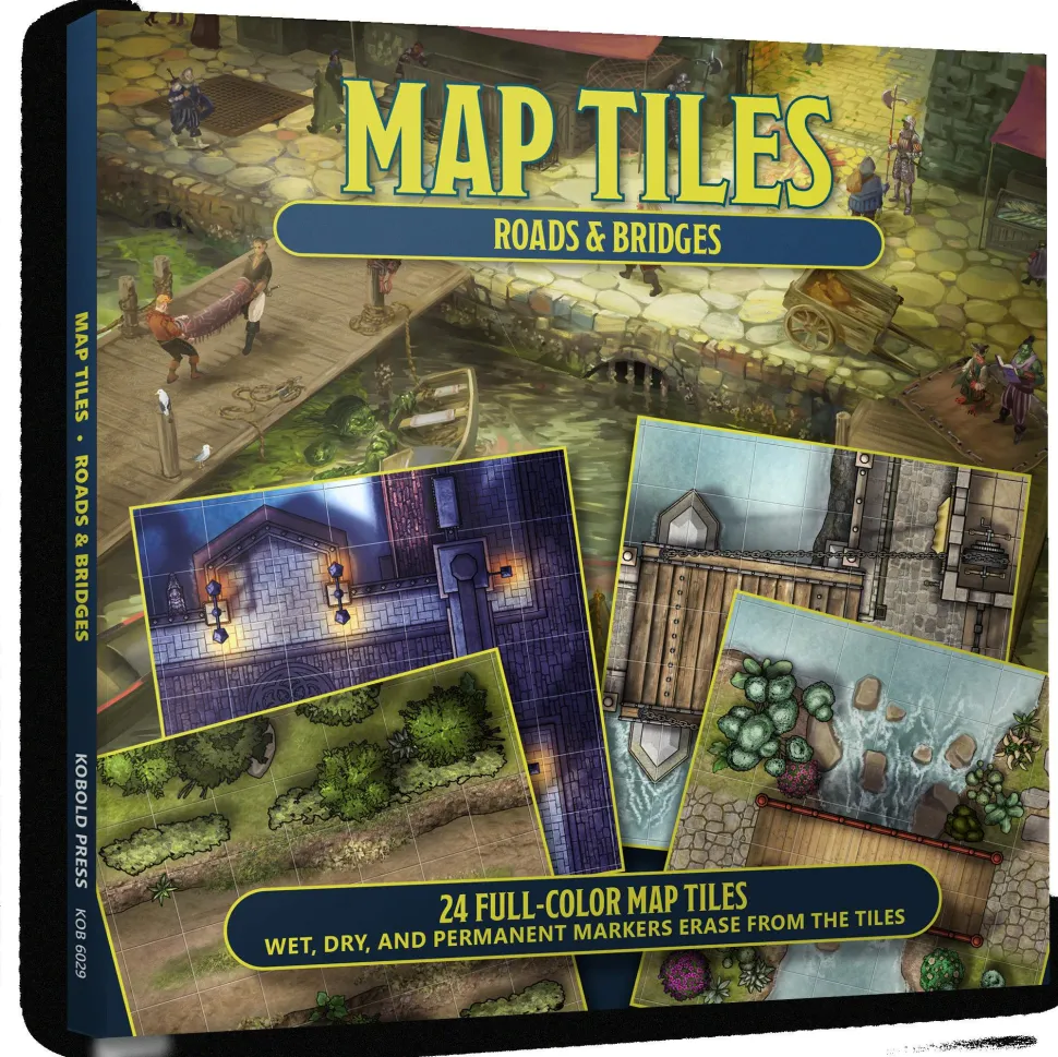 WithMap Tiles: Roads & Bridgesthat essential part of every adventure is right at your fingertips with a collection of back-alleys, drawbridges, and other essential travel routes. These 24 7”x7” dry erase tiles are perfect for quick roadside encounters, epic bridge battles and more!