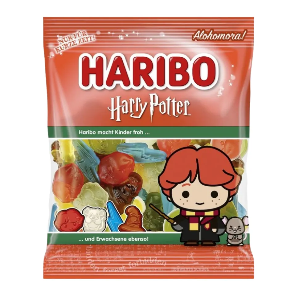 Gode og nesten litt magiske Haribo gummigodteri tema fra Harry Potter. Hver godteri bit er formet som et kjent motiv fra de populære filmene.