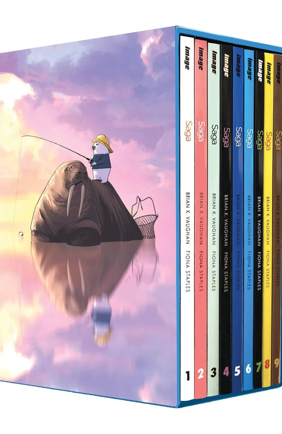COLLECTS SAGA VOL. 1-9 TP WITH A SET OF 6×9 COVER PRINTS EXCLUSIVE TO THE BOX SET!