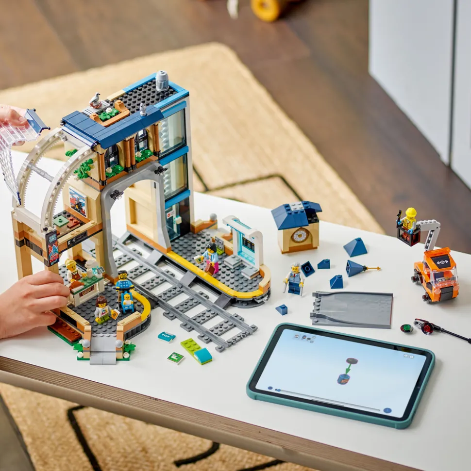 Dette modelltogstasjonssettet inkluderer en trinnvis trykt byggeveiledning samt digitale instruksjoner i LEGO® Builder appen. Her kan barn zoome inn og rotere modeller i 3D, lagre sett og følge framdriften mens de bygger.