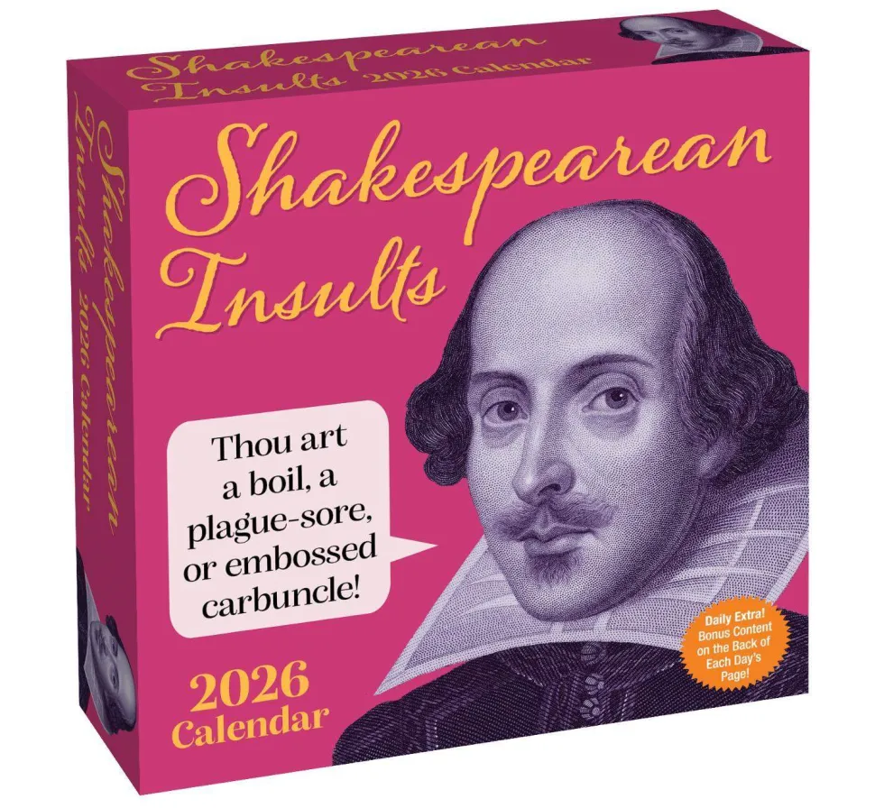 Fret not! Elevate thine verbal dueling with a touch of the Bard’s brilliance! Consult the wittiest of wordsmiths, cast aside the mediocre, and discover the perfect zinger with the Shakespearean Insults 2026 Day-to-Day Calendar. Ideal for literature lovers, English teachers, theater enthusiasts, and history geeks—this hilarious calendar will keep thee laughing and verbally sparring every single day of 2026!