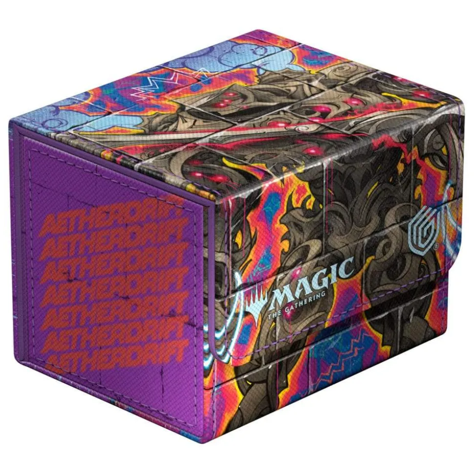 The Sidewinder 100+, made of durable Xenoskin material, holds up to 100 (double-sleeved) or 120 (single-sleeved) cards and is the perfect deck box for Commander/EDH decks. Printed in full color with officially licensed artworks from Magic: The Gathering’s Aetherdrift, Ultimate Guard’s Sidewinder deck boxes with their strong magnetic closure and quality microfiber inner lining are a safe and reliable storage place for MTG decks and individual trading cards.