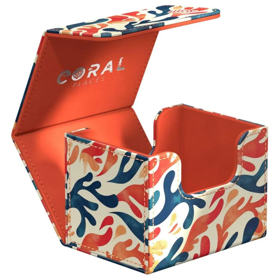 Dive into flourishing underwater worlds with the 2025 Exclusive Sidewinders from Ultimate Guard! The sustainable Coral Places deck boxes are made from 52% recycled materials and, in addition to the durable Xenoskin surface, have a strong magnetic closure and a high-quality microfibre inner lining so that up to 100 (double-sleeved) or 120 (single-sleeved) cards from games such as Magic: The Gathering, Pokémon, Lorcana, One Piece or Yu-Gi-Oh! can be stored safely. The plastic-free packaging is also made entirely from recycled paper and cellulose-based film.