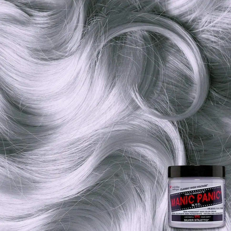 Silver Stiletto er en iskald, grå hårfarge med lavender-skjær som kan brukes som en toner for å fjerne gule skjolder. For best resultat anbefaler vi å lysne håret til et veldig lyst nivå 9 blondt eller lysere før bruk.