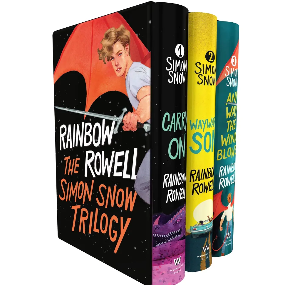 All three books in the New York Times-bestselling Simon Snow Trilogy are now available together in a matching hardcover boxed set featuring Kevin Wada’s beautiful covers: Carry On, Wayward Son, Any Way the Wind Blows.