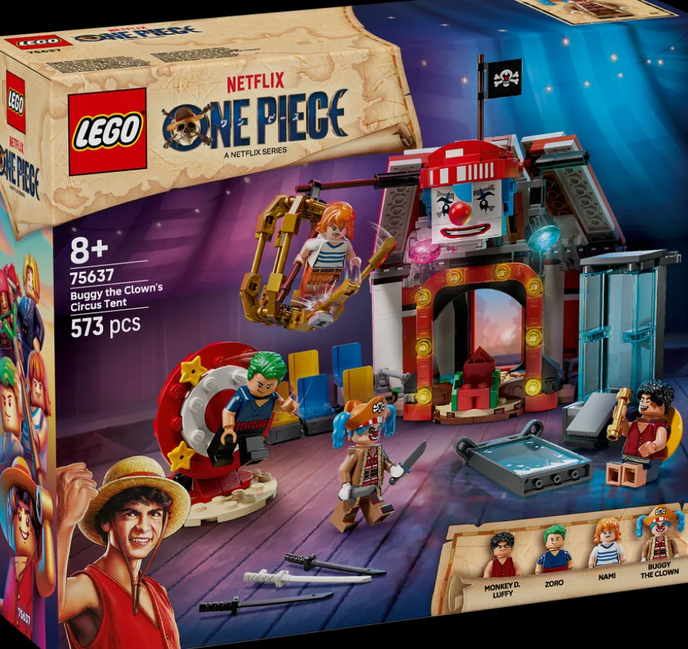 - ONE PIECE sirkuseventyr – Sirkusteltet til klovnen Buggy er et LEGO® anime-lekesett for gutter og jenter fra åtte år og oppover som tar barns fantasi med til sirkuset for kreativ rollelek