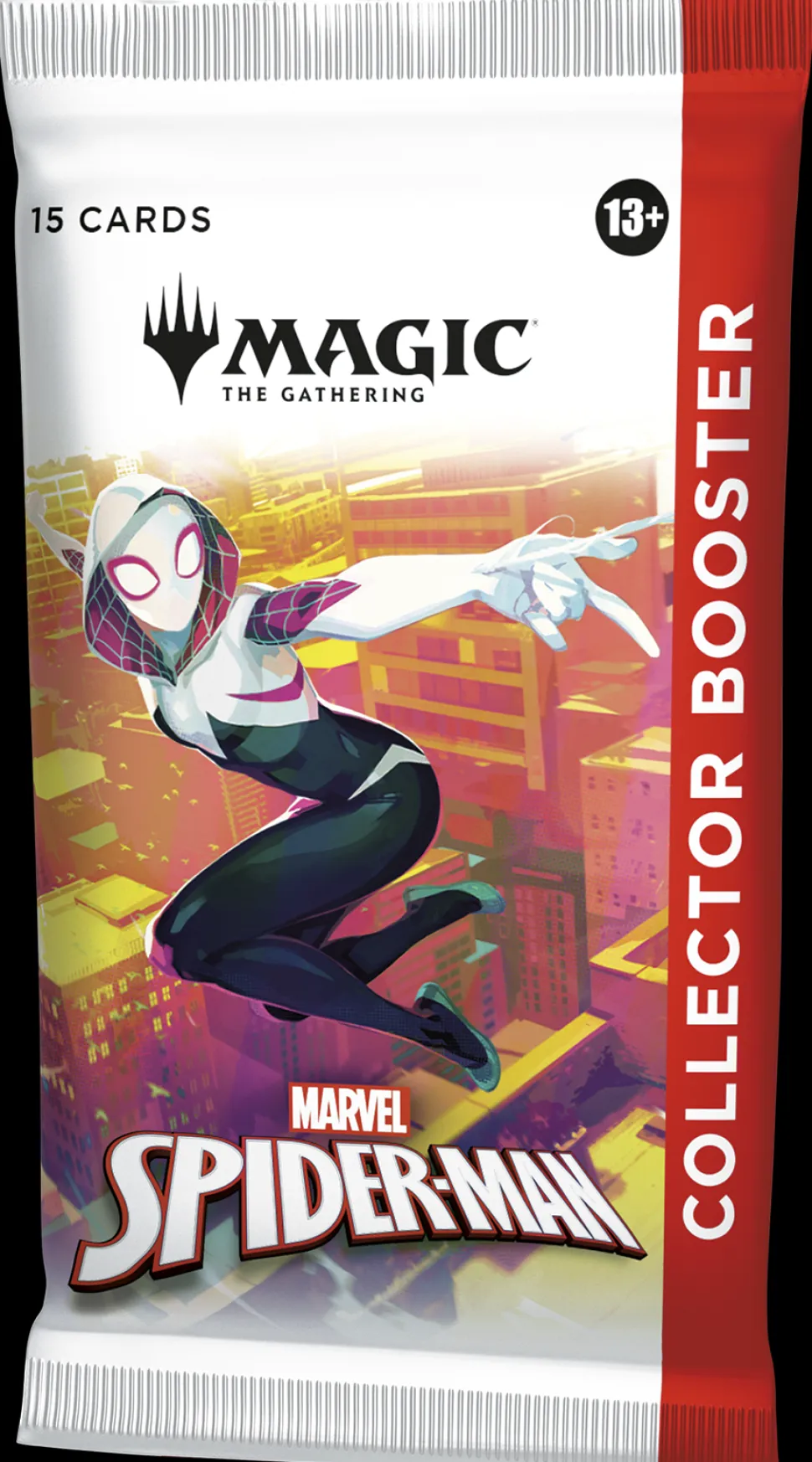 Collector Boosters gather all the coolest cards and foil treatments in one place! Each booster contains Rares and/or Mythics, Traditional Foils, a Borderless basic land, and more. Web-slinging heroes may encounter even more beautiful foils and picture-perfect lands. You could also find the headliner card—the most collectible pull of all!