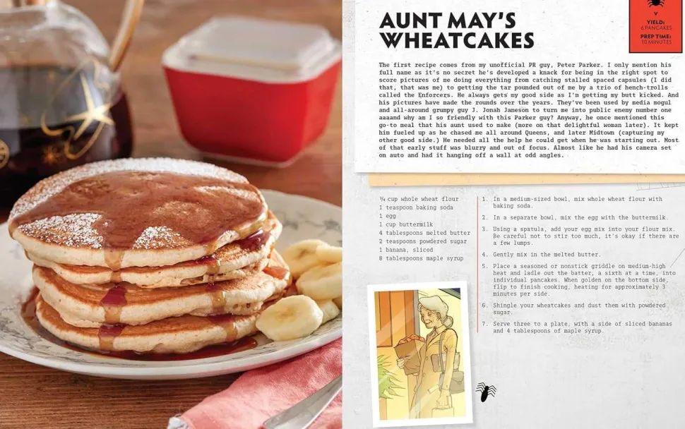 With great recipes, there must also come great responsibility . . . to share. Spider-Man’s decided to do just that, pairing recipes for his favorite New York City dishes with action-packed anecdotes. From Aunt May’s Wheatcakes to Miles Morales’s Arañitas to Wong’s Chai Tea Latte, Spidey turns each meal into a culinary adventure.