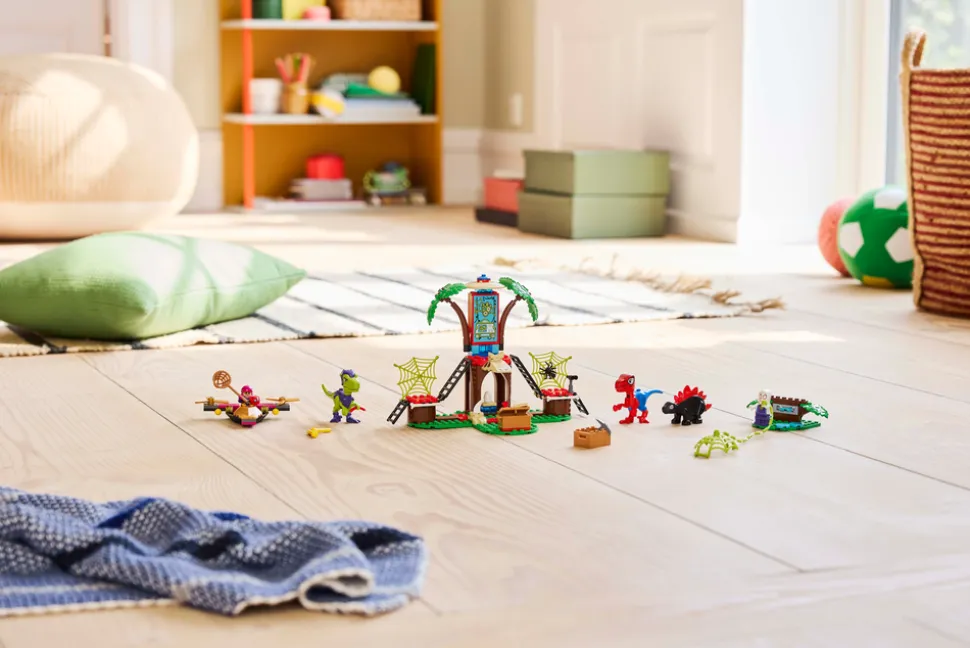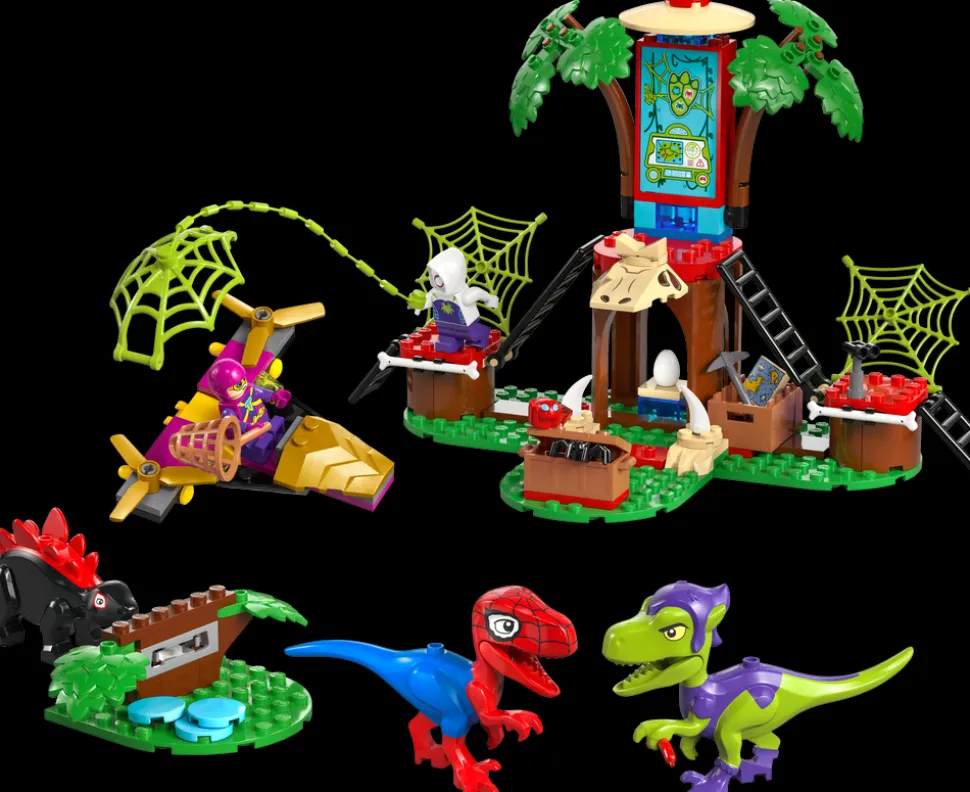 - Eventyr i en LEGO® trehytte – barn kan finne på gøyale helte-, skurke- og dinosaureventyr med Trapster, Ghost-Spider, Gobby-Raptor, Spidey-Rex, Dino-Spin og Trace-E i jungeltrehytta