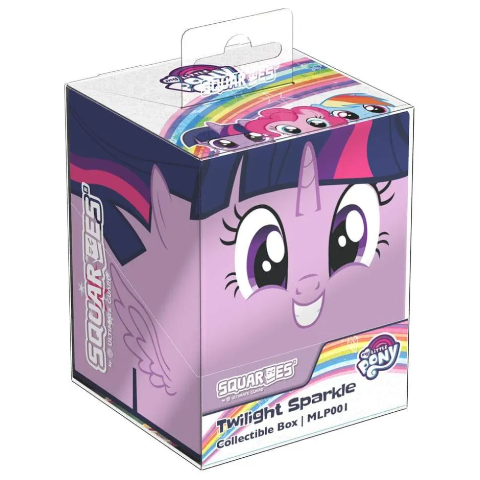 Collectible box for storing TCG decks, tabletop gaming accessories, and/or collectibles. The My Little Pony «Friendship is Magic» edition Squaroe holds up to 100 cards in double protective sleeves if used as a deck box. Squaroes are made from 78% renewable recources.