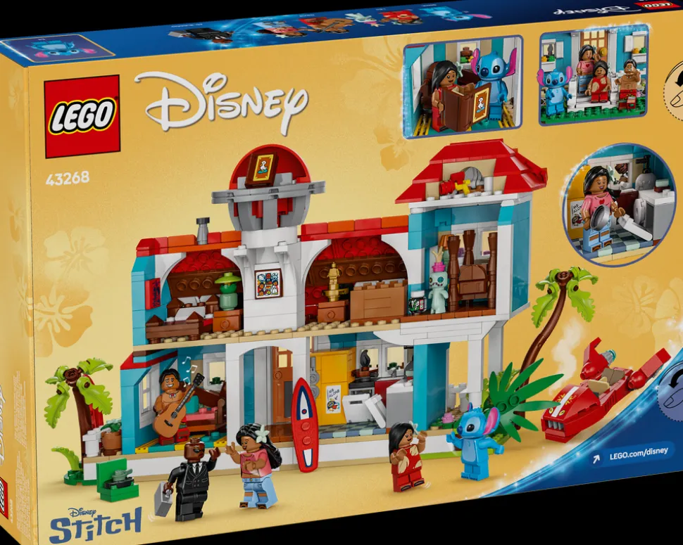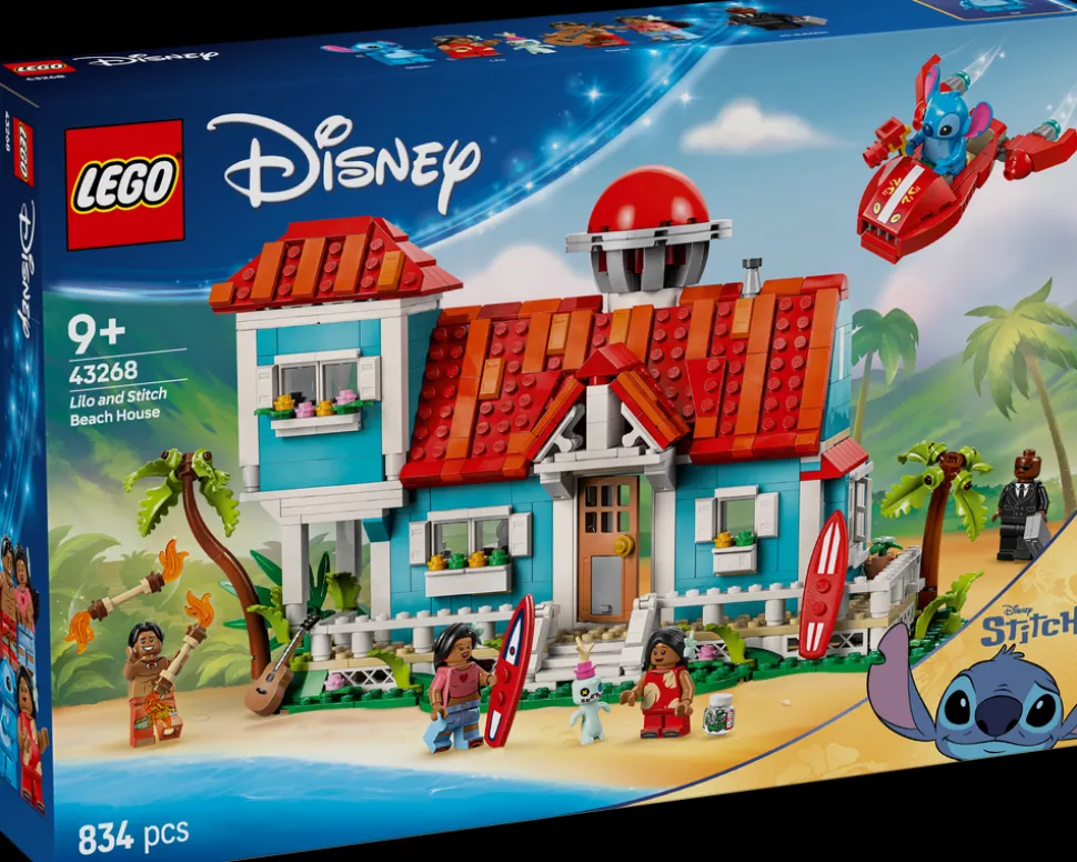 Fans og barn fra ni år kan glede seg til mange gøyale eventyr med LEGO® ǀ Disney byggelekesettet Strandhuset til Lilo og Stitch (43268). Denne flotte Disney-byggeleken inkluderer et toetasjes strandhus, mange filmdetaljer og påskeegg, inkludert to surfebrett, Scrump, Lilos dukke, platespiller, syltekrukke, et klossebygd romskip og fem LEGO ǀ Disney minifigurer – David, Lilo, Herr Bubbles, Nani og Stitch – som kan brukes i utallige gøyale lekeeventyr.