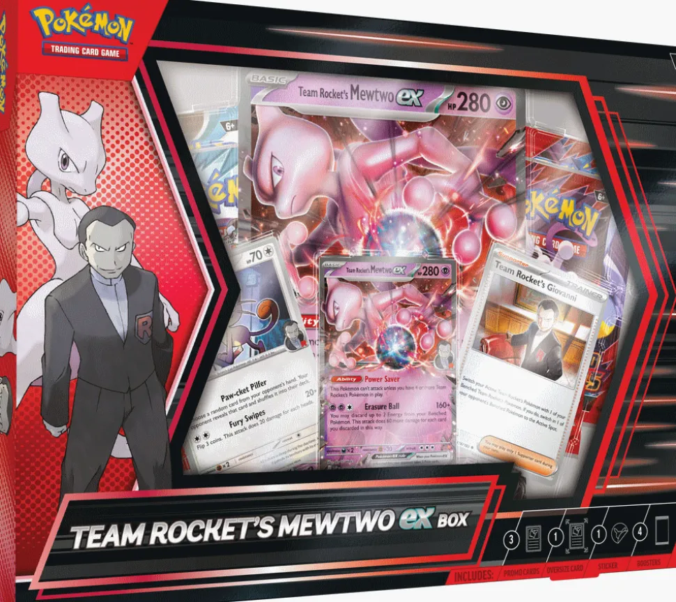 - 1 oversize foil card featuring Team Rocket’s Mewtwo ex