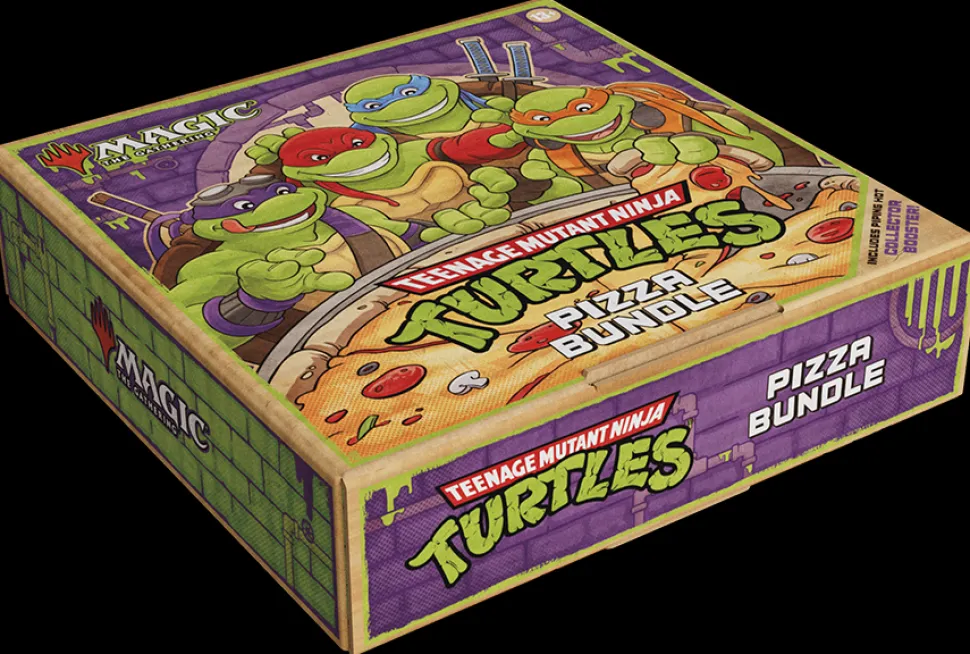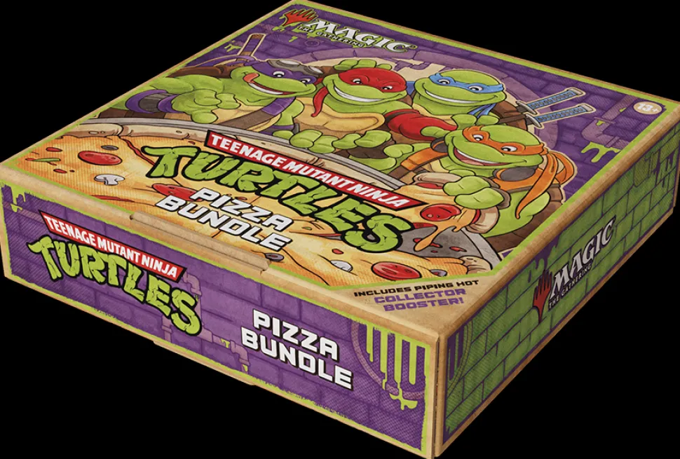 Calling all TMNT and Magic fans: Any way you slice it, this hot and fresh bundle really delivers! Once you open the lid, you’ll be greeted with nine Turtle-tastic Play Booster packs, 25 basic lands, an oversized Spindown™, full-art pizza basic lands, and pizza-themed promo cards of classic Magic spells. Don’t forget the cherry (tomato) on top—a Collector Booster stuffed with rares and foils!