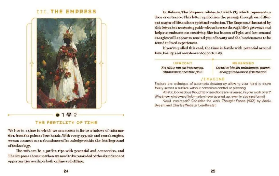 A note on art creation: The tarot card images in this deck were developed in collaboration between artist and technology. They were created in part by generative AI.