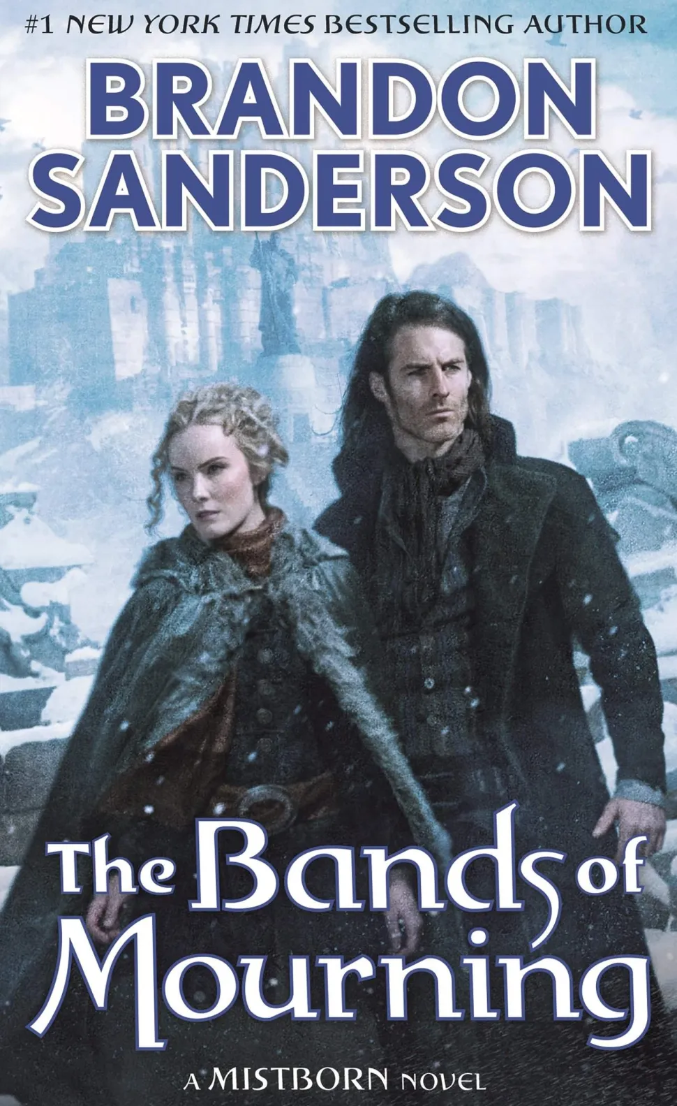 The Bands of Mourning are the mythical metal minds owned by the Lord Ruler, said to grant anyone who wears them the powers that the Lord Ruler had at his command. Hardly anyone thinks they really exist. A kandra researcher has returned to Elendel with images that seem to depict the Bands, as well as writings in a language that no one can read. Waxillium Ladrian is recruited to travel south to the city of New Seran to investigate. Along the way he discovers hints that point to the true goals of his uncle Edwarn and the shadowy organization known as The Set.