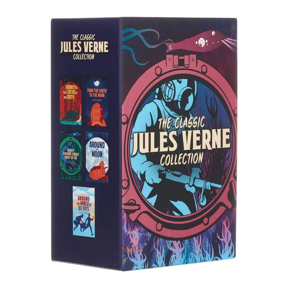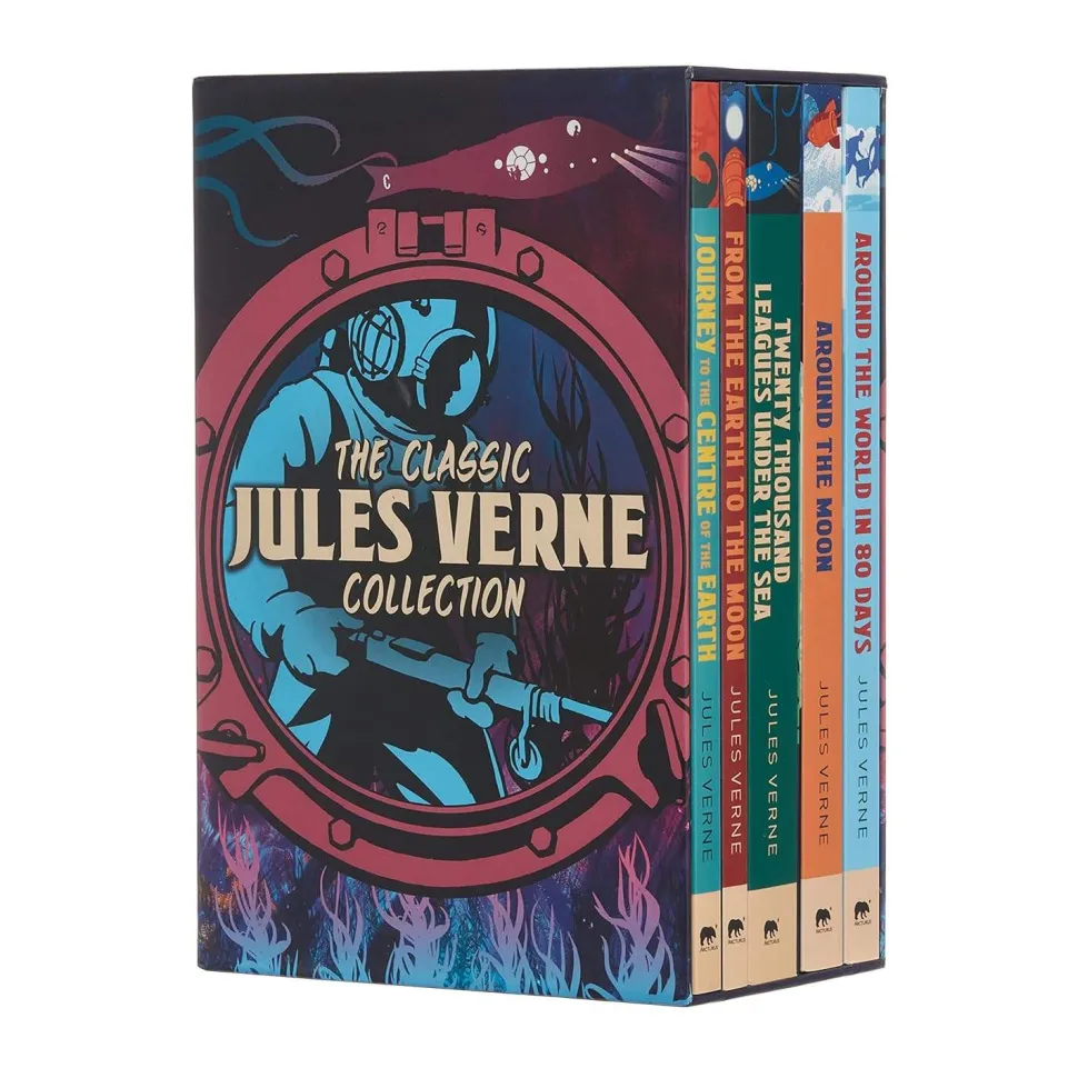 This essential five-volume box set brings together the classic works of Jules Verne, presented with striking contemporary cover designs.
