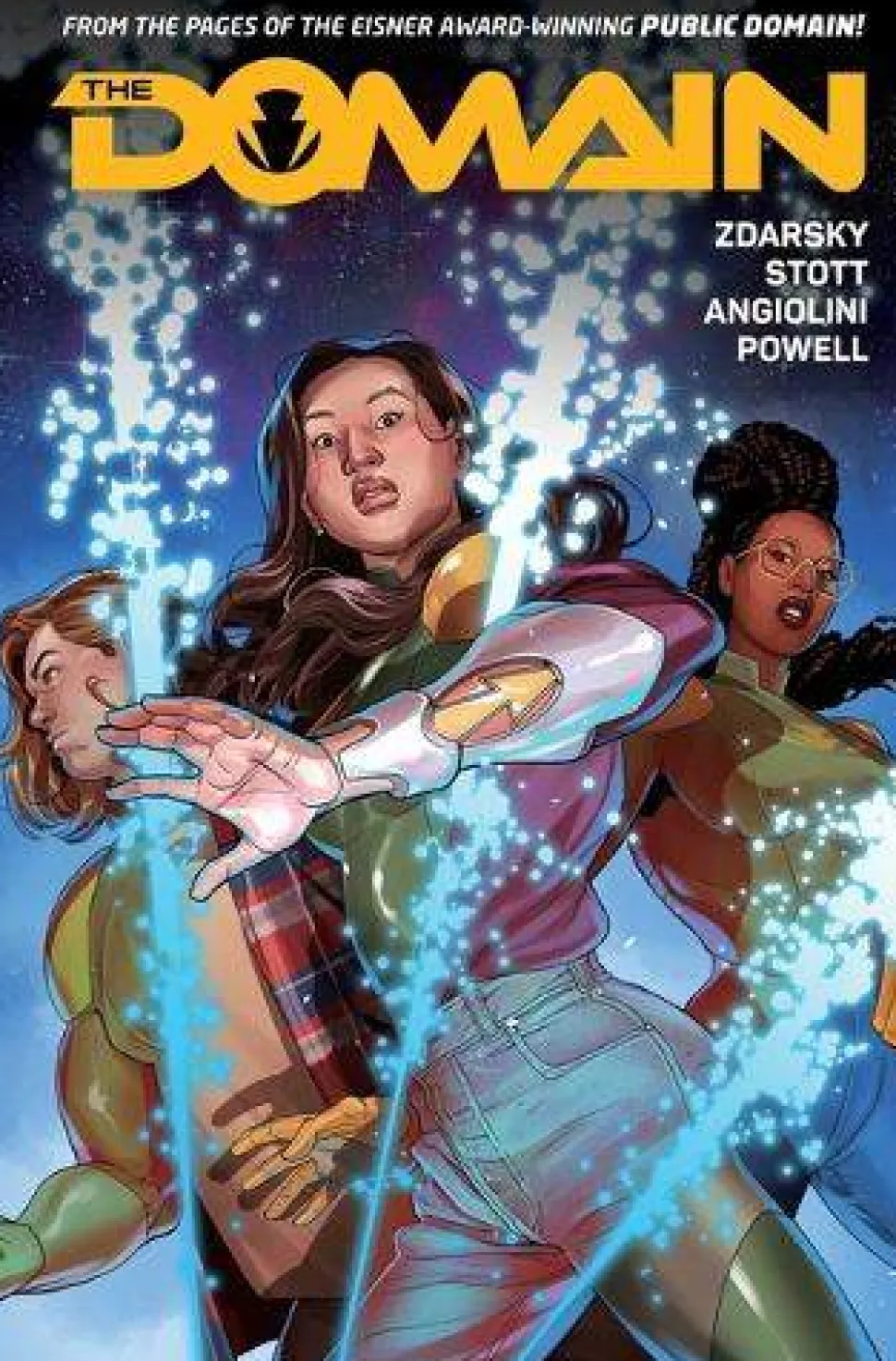 When three best friends discover a crashed UFO, they also discover technology that gives them incredible abilities! But there’s a catch: only one of them can use the powers at a time! Can their friendship survive the power’s temptation? In the pages of Image’s Eisner-winning series, PUBLIC DOMAIN, Syd Dallas and the team at Dallas Comics reimagine their classic character THE DOMAIN for a new audience, and…this is that comic! Collects issues #1-3.