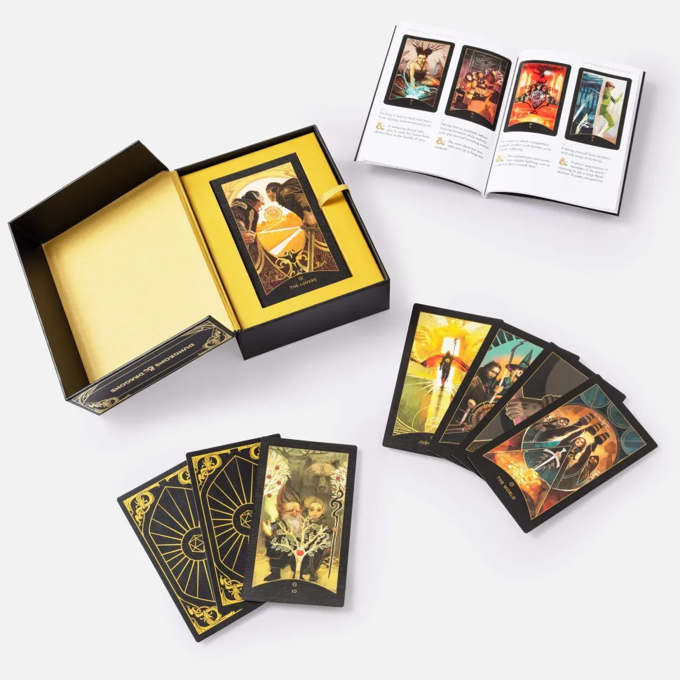Beautifully illustrated with exclusive art, the deck also includes a booklet that introduces players to tarot, explains the meanings of the cards, and includes prompts to add dynamic twists to your gameplay, making this the ultimate collectible for dungeon masters, players, and fans of RPGs.