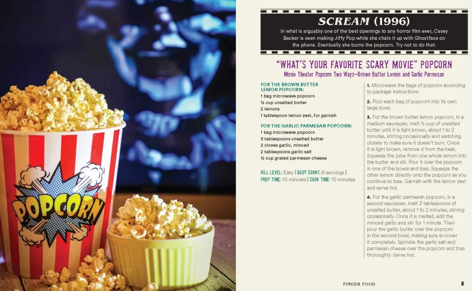 If you’re looking for kitschy Pinterest recipes like coffin-shaped cookies or zombie finger sandwiches, look elsewhere. With The Horror Movie Night Cookbook, you’ll enjoy thoughtful and tasty food and cocktail pairings inspired by the actual content of chilling classics like Jaws, Psycho, Scream, The Conjuring, The Evil Dead, Halloween, and more of horror’s most frightening favorites! Inside you’ll find recipes like: