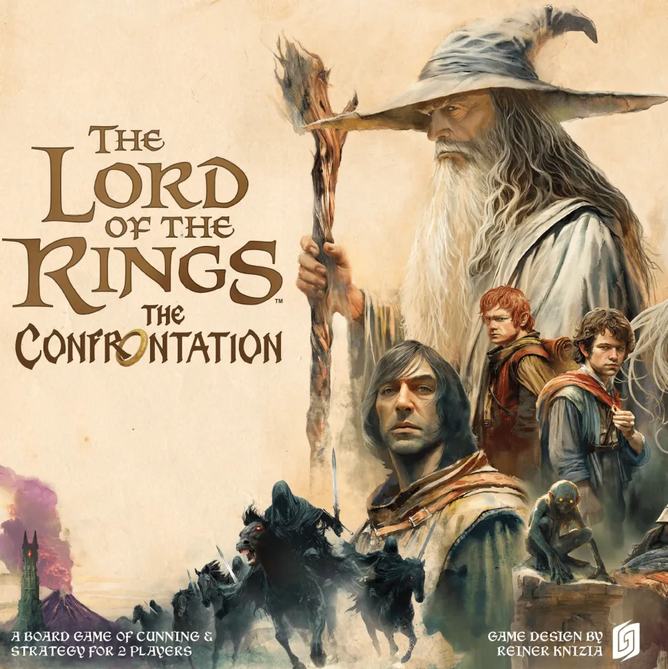 The Confrontation is a board game in which players take control of the forces of Sauron, seeking to find their master’s ring, or the forces of the free peoples of Middle Earth seeking to destroy Sauron’s ring in the fires of Mount Doom. The Confrontation allows players to control many of the famous characters of Tolkien’s famous trilogy, while playing an intense 30-minute game that is a combination of bluffing and strategy. The Confrontation is designed by renowned game designer Reiner Knizia.Deluxe Confrontation gives the game a new and larger gameboard, larger sculpted plastic stands, and completely new artwork and graphic design. The game includes 18 entirely new characters in addition to the classic characters found in the original. The new characters allow players to play an entirely new game, or mix the new and the old characters for an entirely different game experience. 4 new Special Cards are also included, for additional special actions.