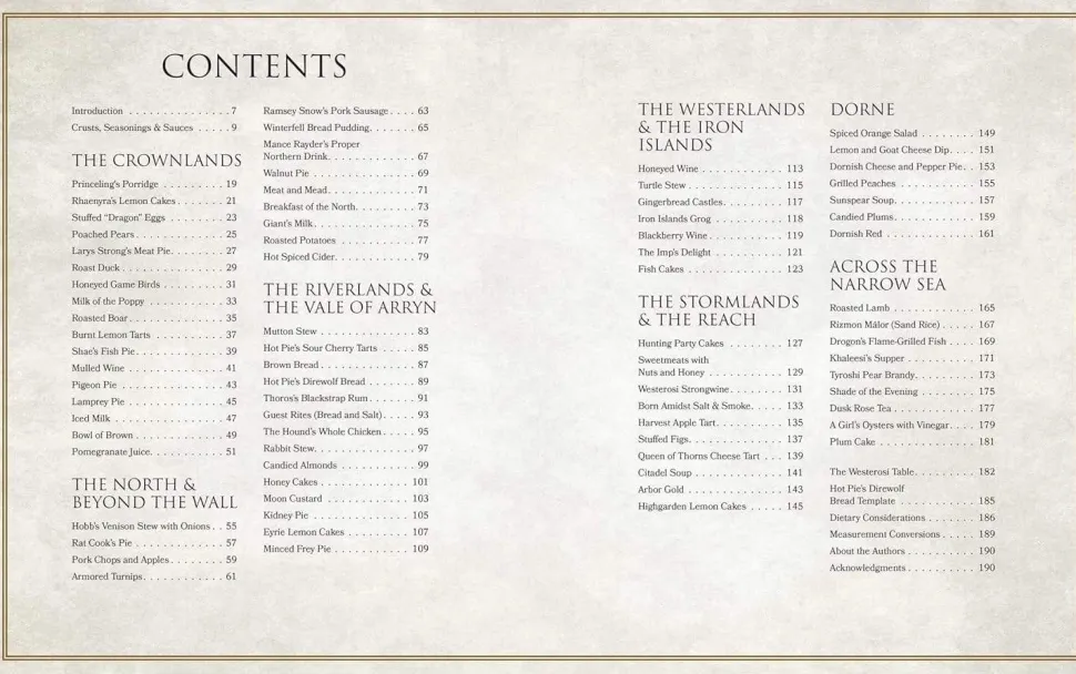 The Westeros Cookbook enables you to recreate the mouthwatering meals enjoyed by your favorite characters in the iconic TV shows, with regionally themed chapters such as “The Crownlands” and “The Westerlands & The Iron Islands.”