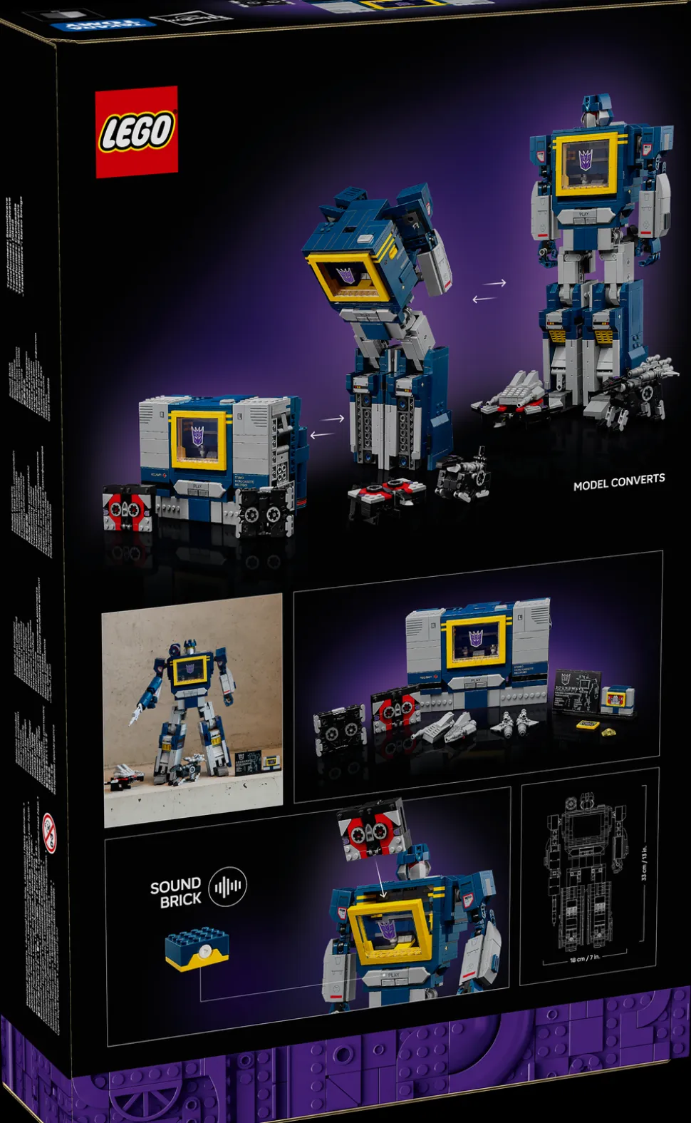 - Dimensjoner – Soundwave-figuren i dette settet med 1505 deler er 33 cm høy