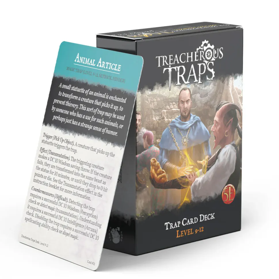 Save time while prepping or grab traps on the fly! Inside you’ll find 50 premade trap cards to challenge your level 9-12 party, ranging from minor setbacks to deadly threats.